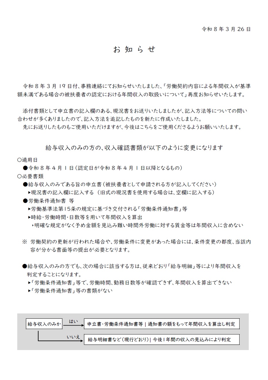 > 追加:労働契約内容による年間収入が基準額未満である場合の被扶養者の認定における年間収入の取扱いについて